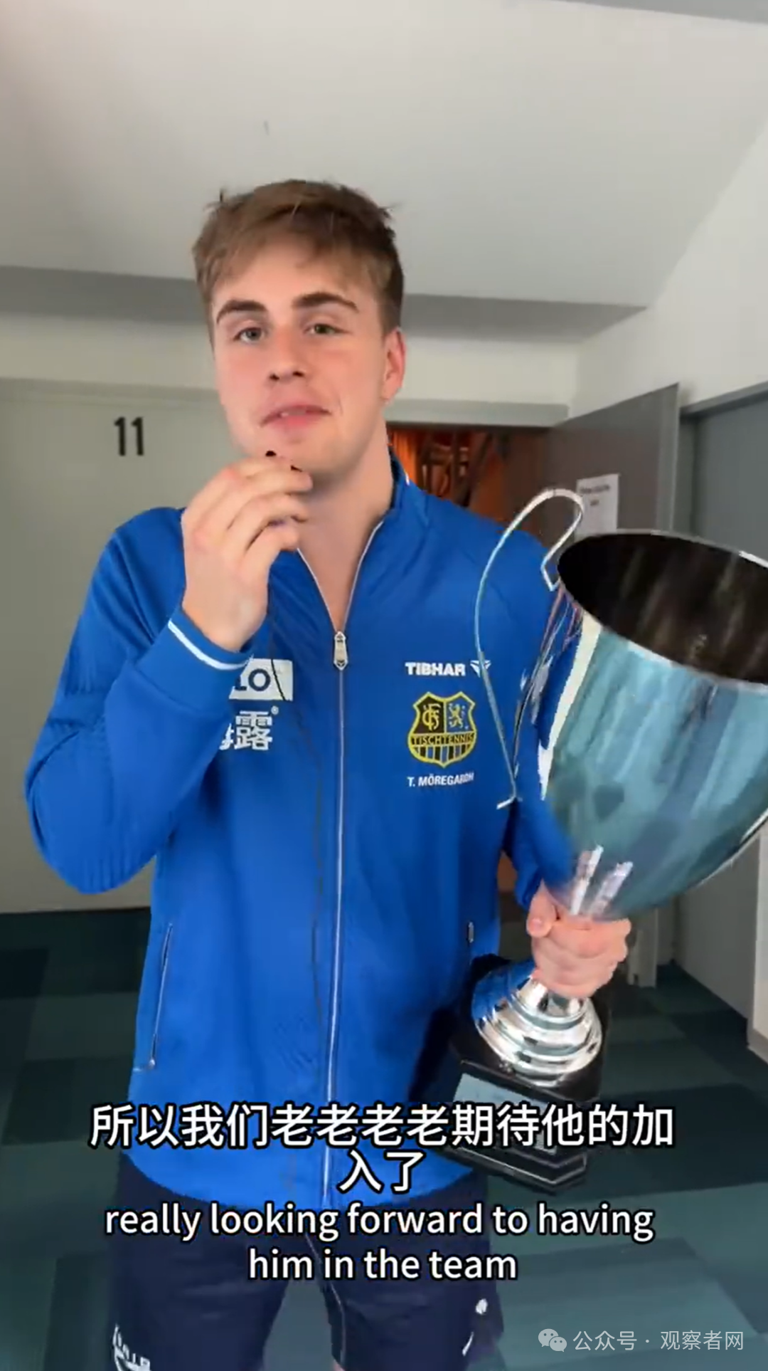 欧洲乒联发布了小莫赛后采访,小莫连用三个“really”表达对樊振东加盟的期待。